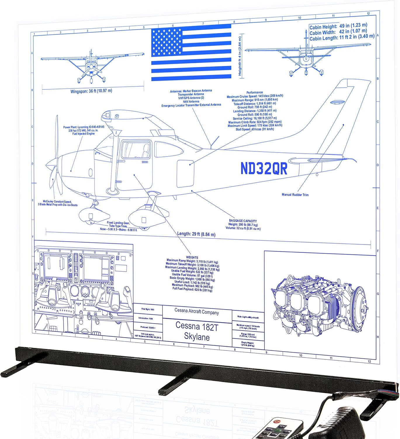 Amazon.com: Cessna 182 Skylane Personalized Laser Engraved Blueprint Artwork. Custom Artwork for the aviation and Cessna enthusiasts. The Perfect Pilot's Gift! (Edge Light Acrylic): Home & Kitchen